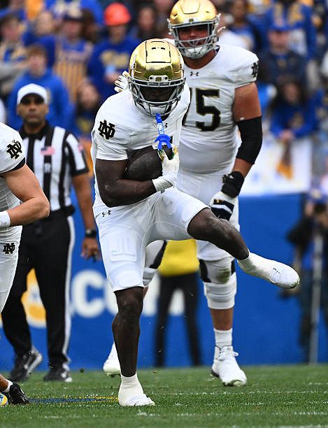Notre Dame running back Jeremiyah Love takes the handoff…